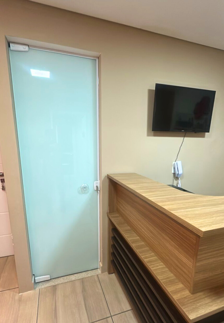 O jateamento é feito com precisão, permitindo criar efeitos foscos, valorizando o visual e a privacidade dos ambientes.